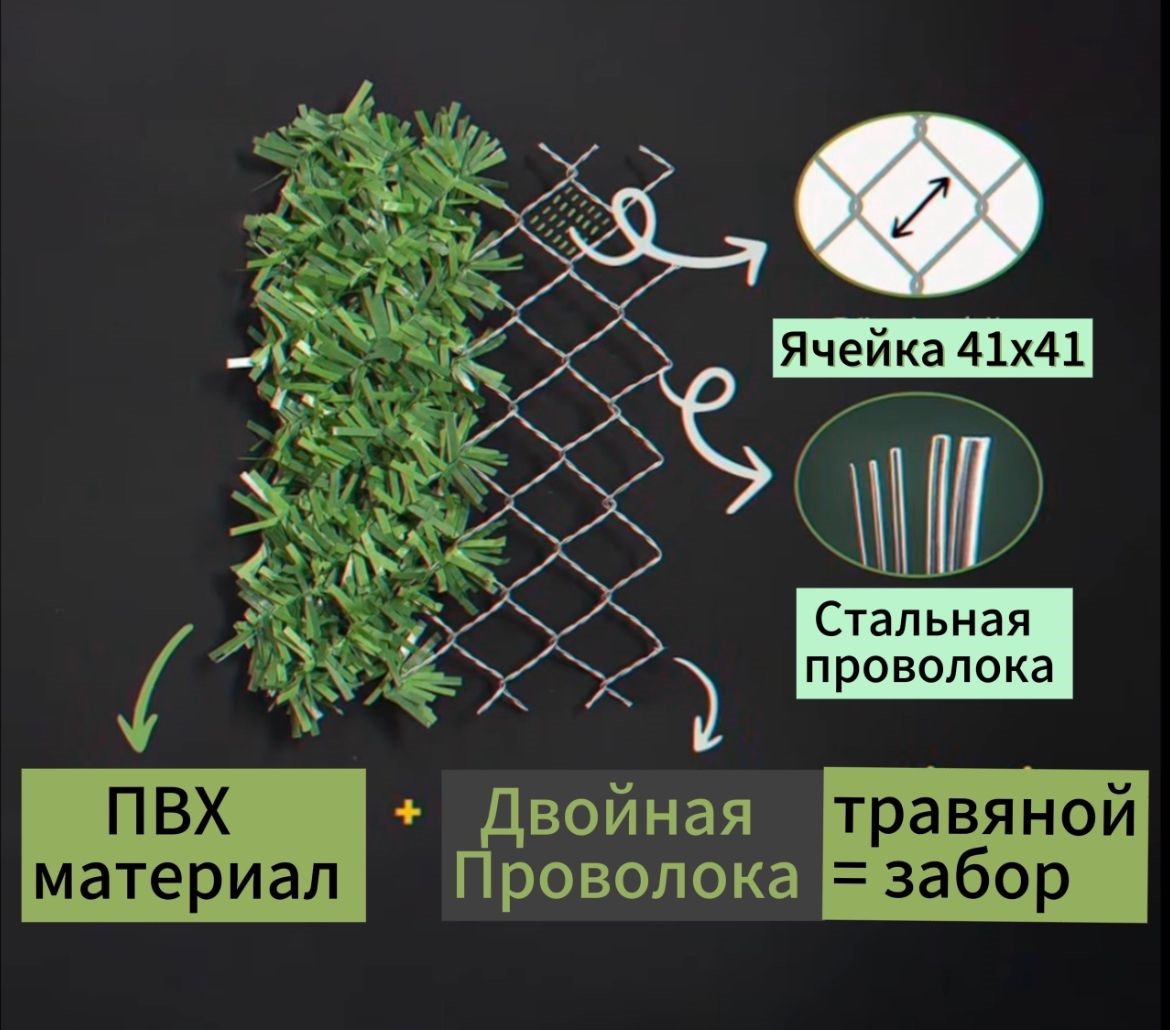 Покрытие: Широкая ПВХ-лента (80 мм) толщиной 110 мкм с фактурным теснением, доступная в двух оттенках зеленого для максимальной натуральности.